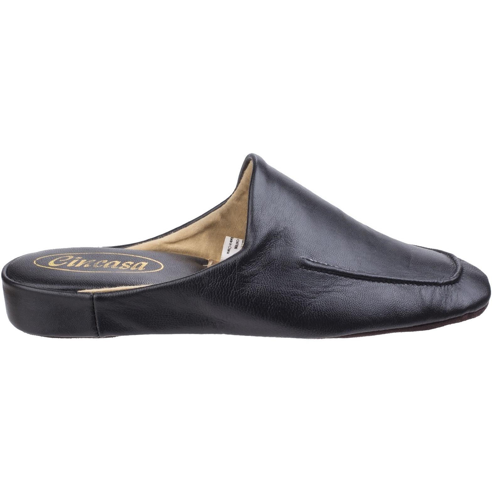 Traditional leather house shoes from Cincasa. This luxury mens mule slipper is crafted with a supple leather upper with vintage designed leather soled base.