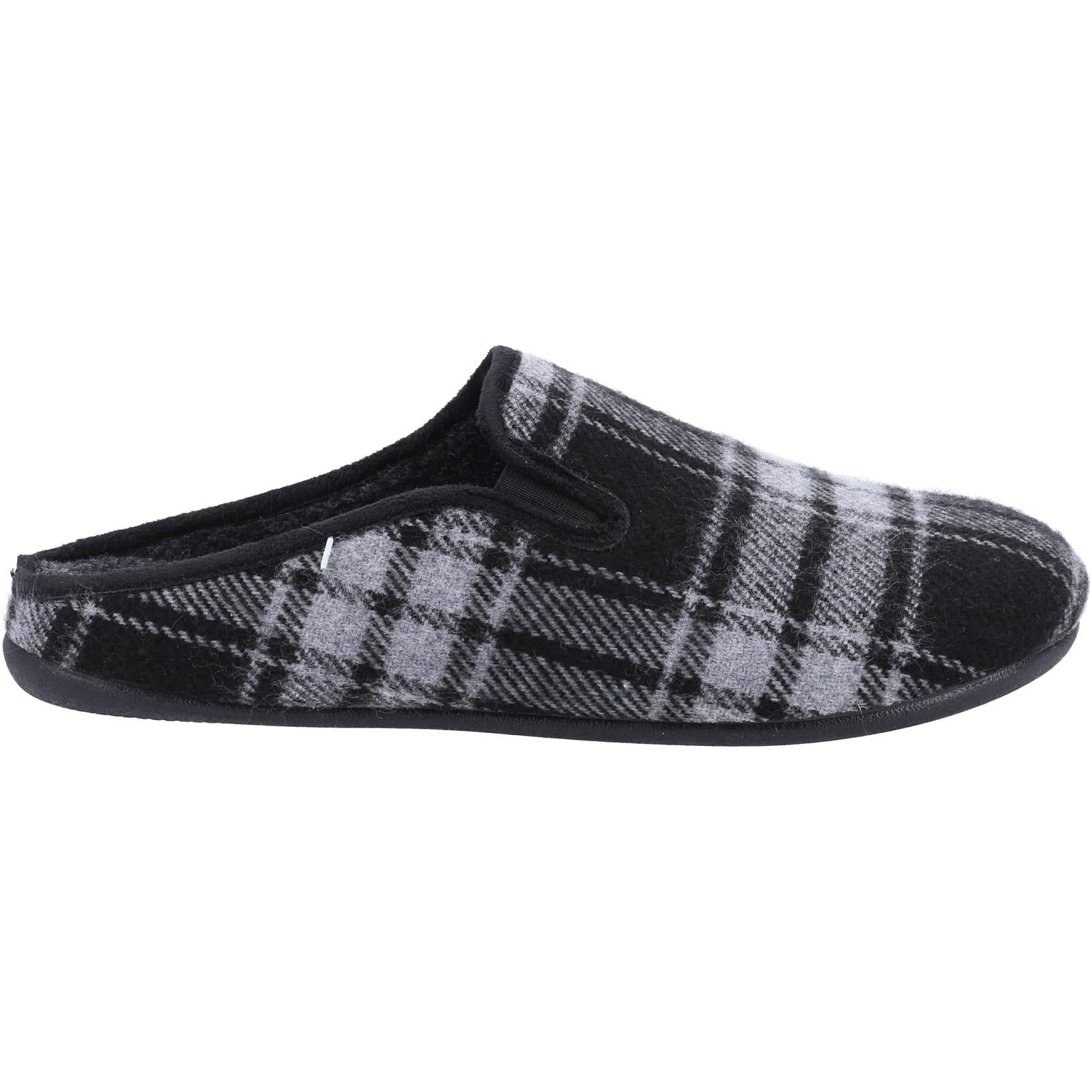 Cotswold Shoes Syde Mens Slip On Mule Slipper with check effect textile upper, warm textile lining and a flexible rubber sole.