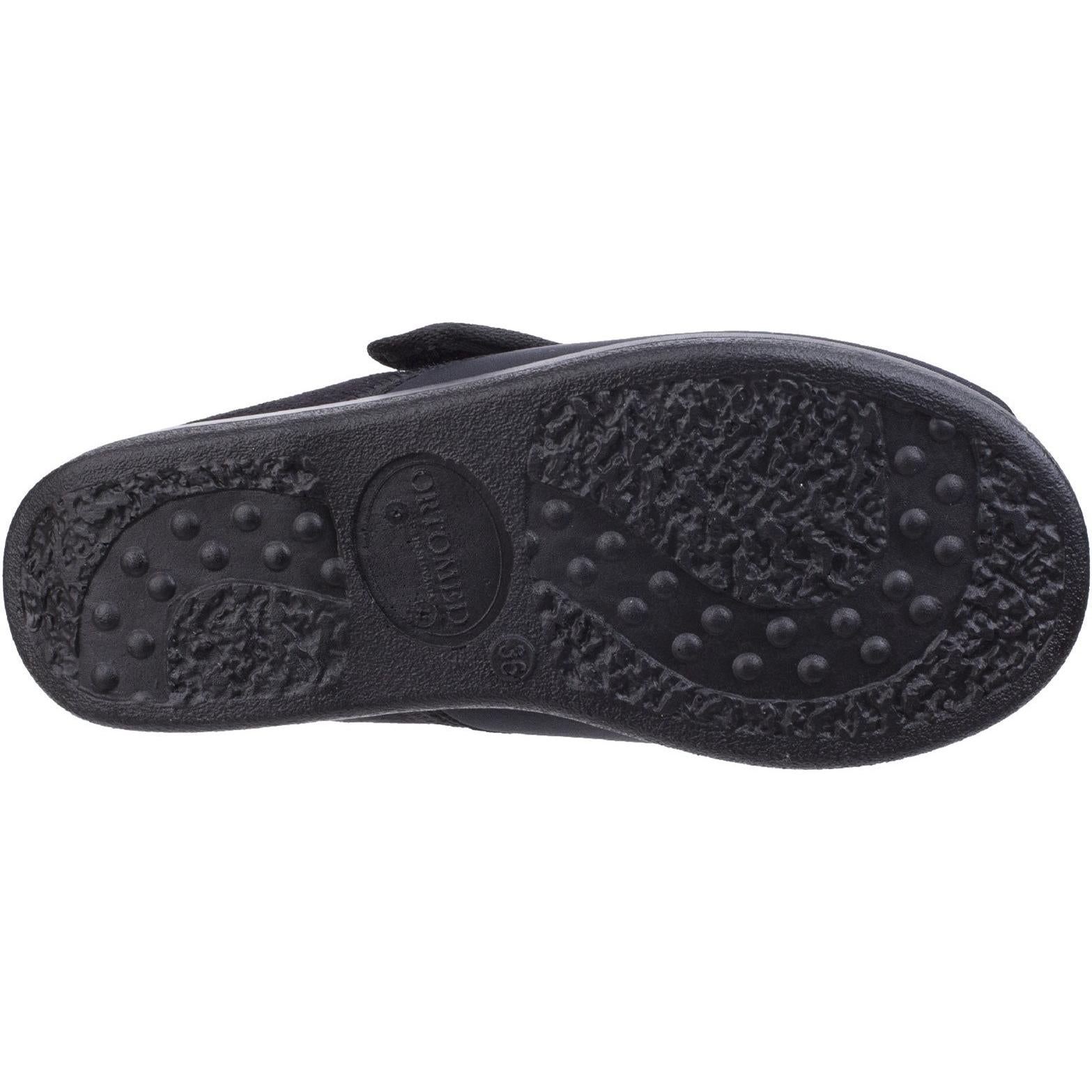 Extra wide Touch Fastening slippers fitting up to a 4E wide fit. Wide and roomy toe box area ideal for swollen feet. Extra long Touch Fastening strap and simple wide opening. The insole can be removed if required. Machine washable.