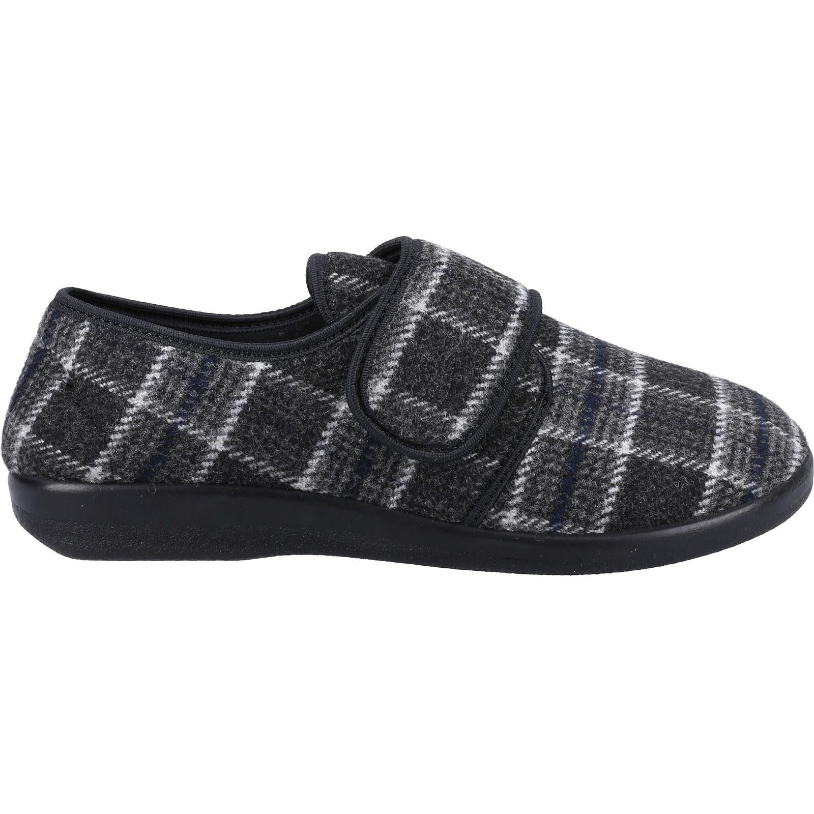 Extra wide Touch Fastening slippers fitting up to a 2E wide fit. Wide and roomy toe box area ideal for swollen feet. Extra long Touch Fastening strap and simple wide opening. The insole can be removed if required. Machine washable.