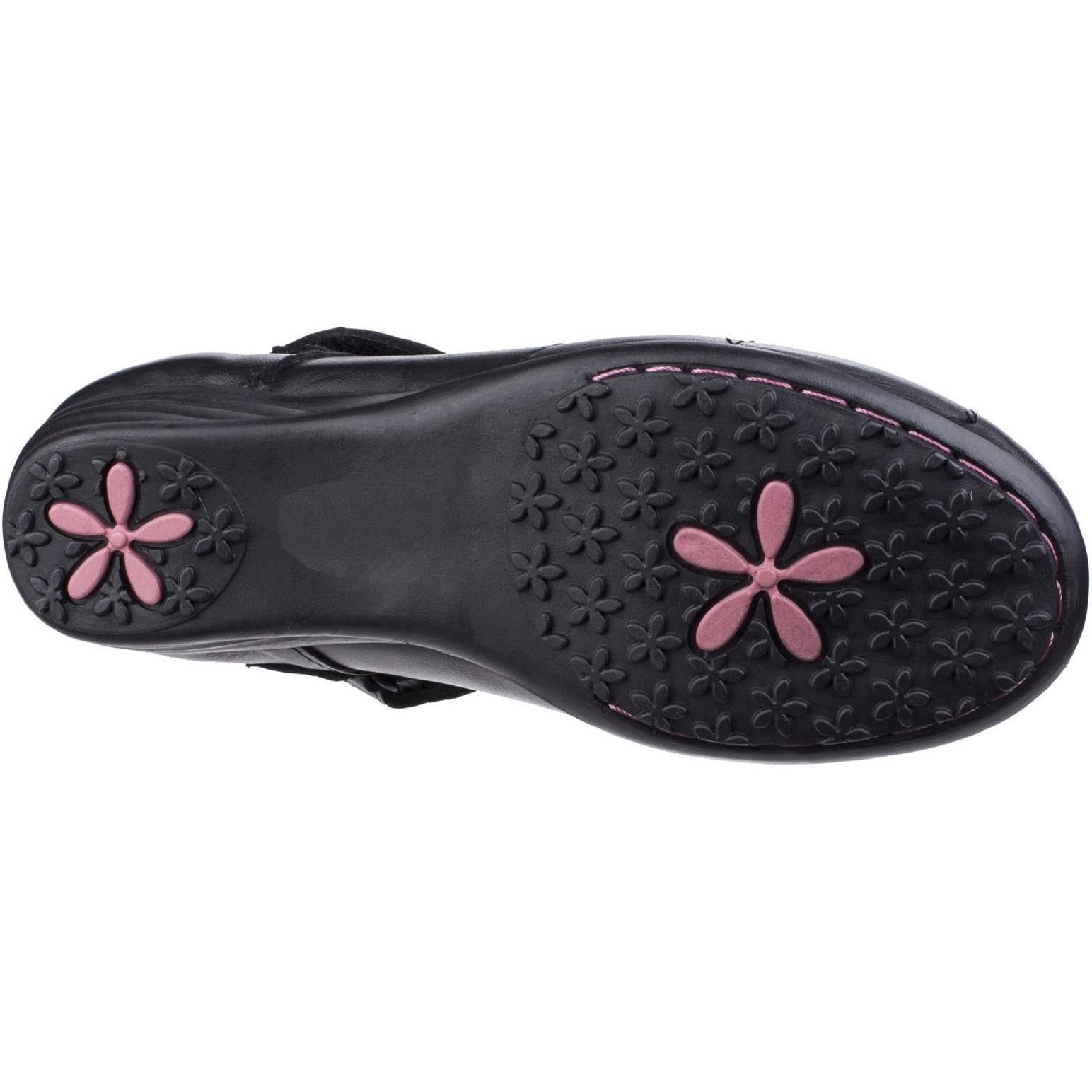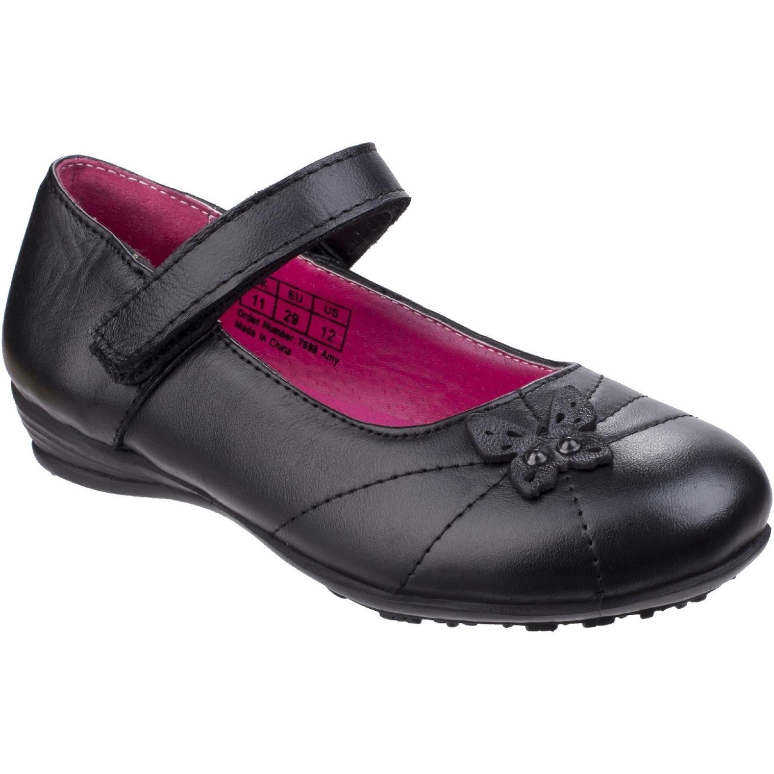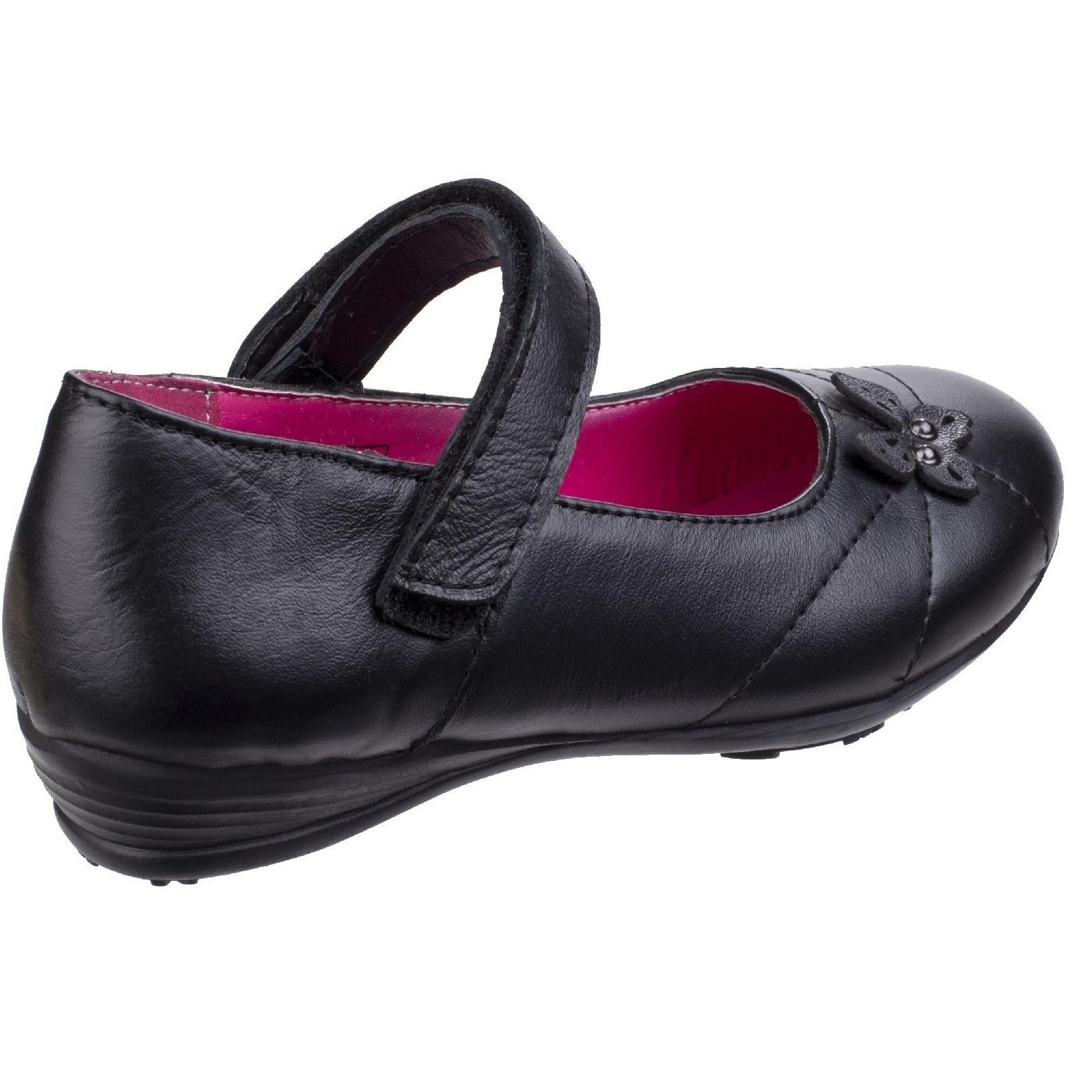 Smart semi-casual girl's Mary-Jane school shoe with smooth leather upper, studded butterfly detail and sporty outdoor sole.