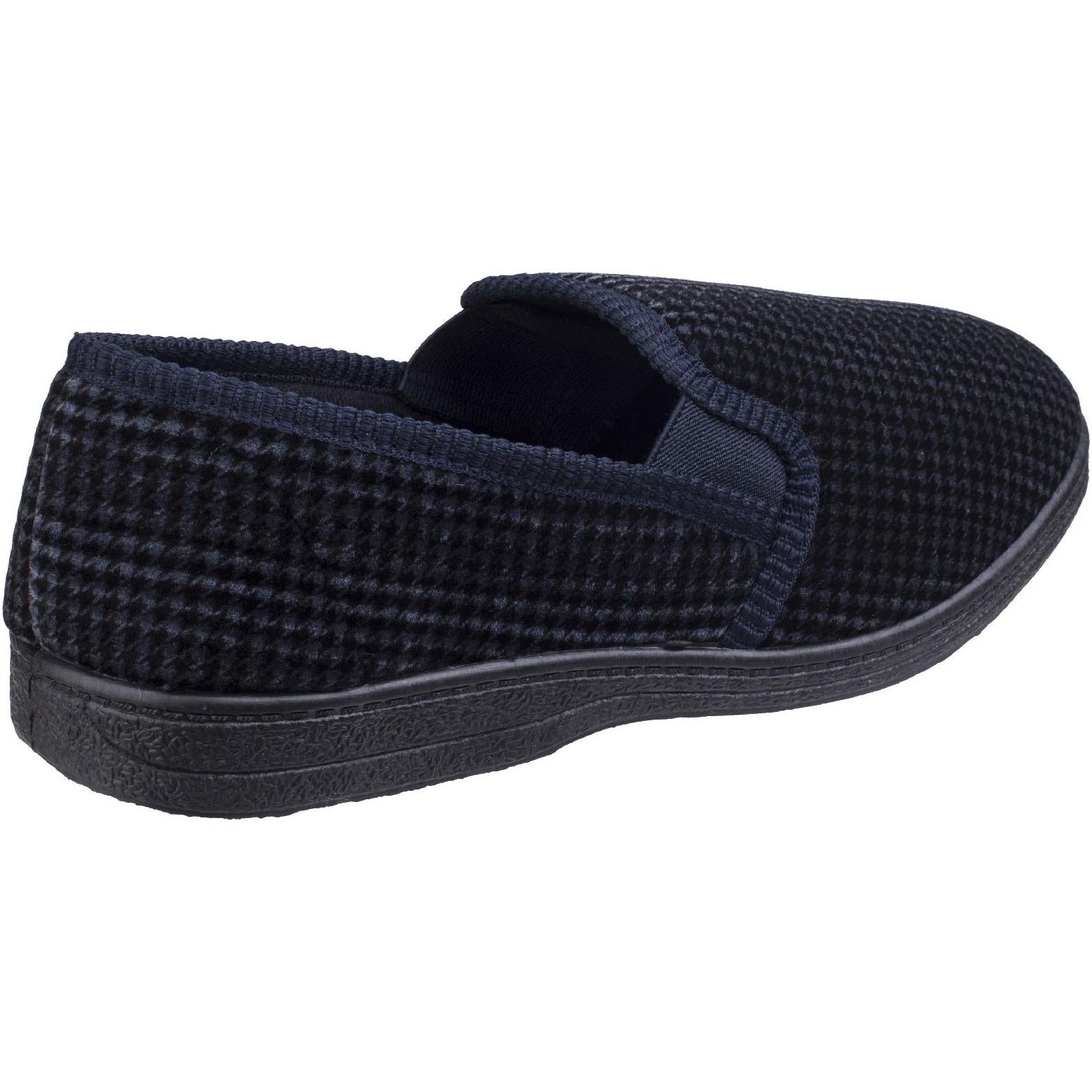 Men's traditional slipper with soft textile upper with classic chequered pattern, twin elastic gussets and lightweight, flexible, cushioning PVC sole.