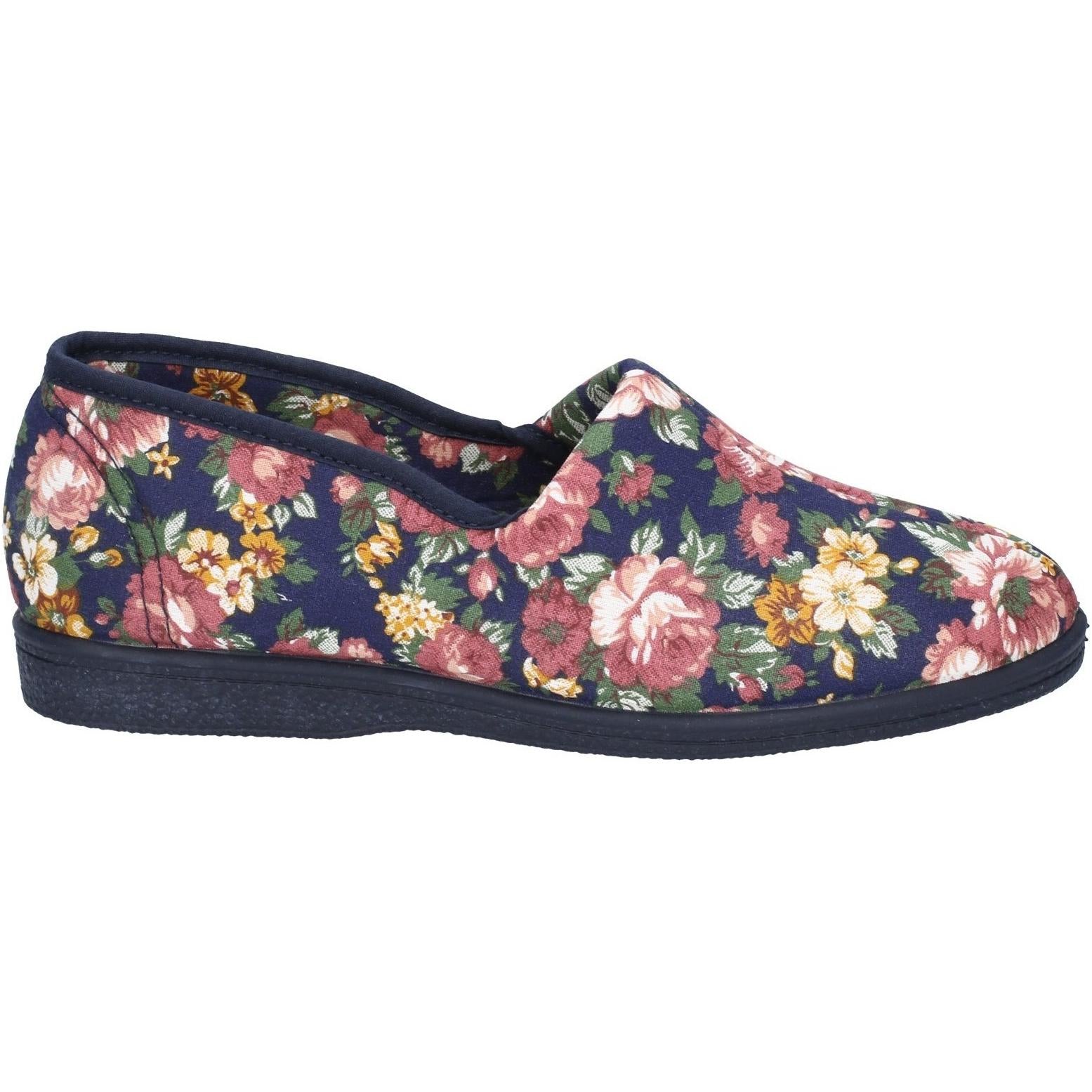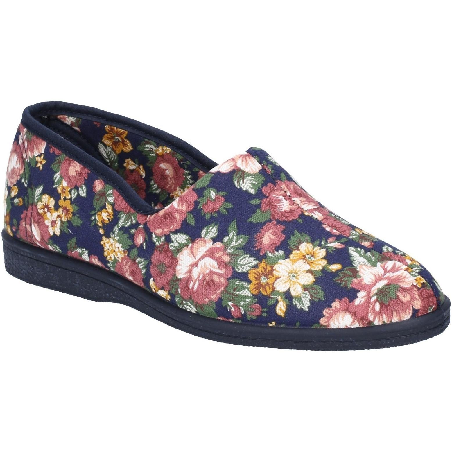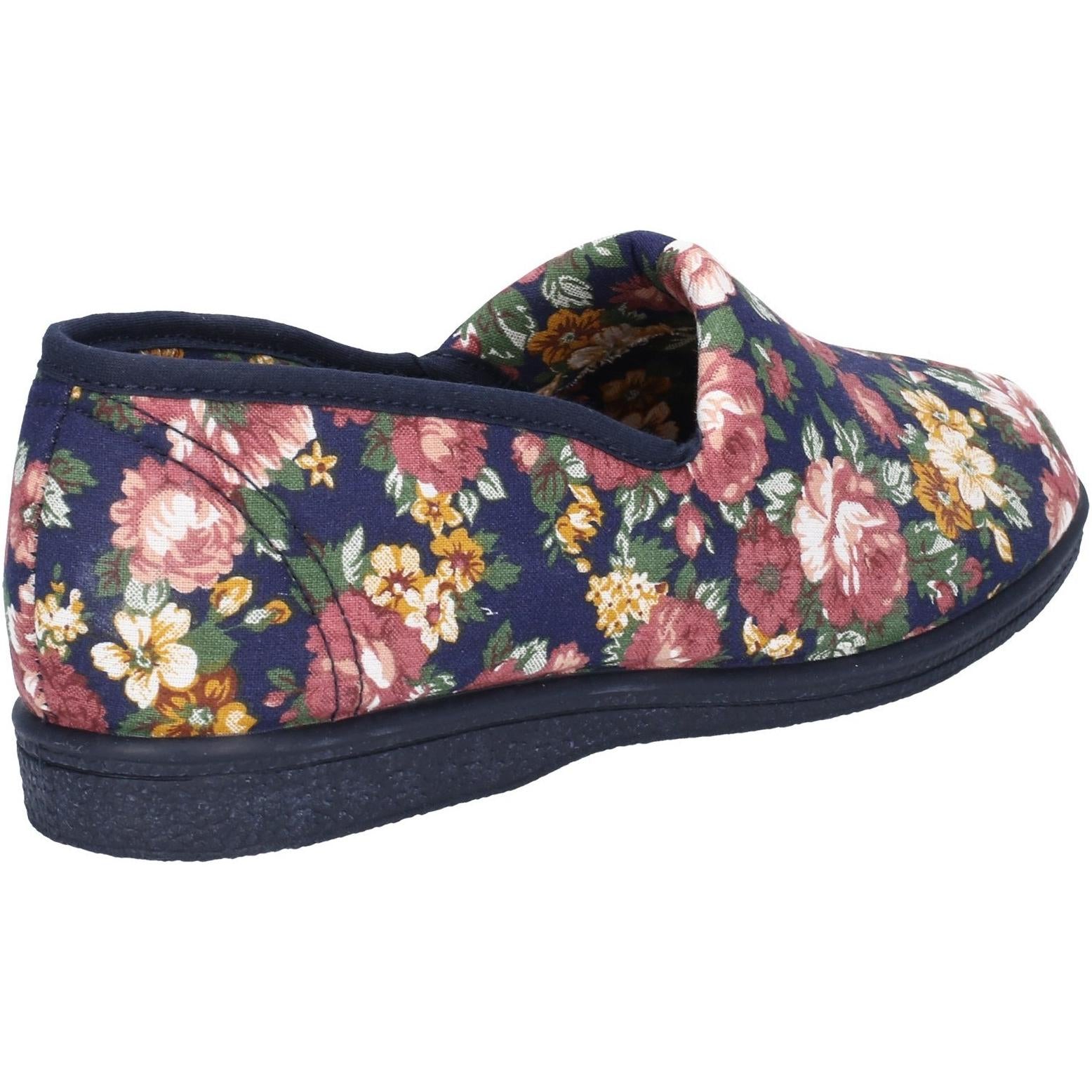 Lightweight women's canvas slip on floral loafer shoe ideal for warmer weather or as a house slipper. An elegant flower pattern adorns the shoe inside and out, bringing summer into your living space all year round.