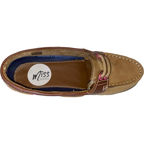 Step out in style with Miss Shoes Women's Catesby Lace Up Leather Boat Style Ballerina Pumps in luxurious brown leather. These ankle-height pumps feature a slim ballerina design with a unique lace-up fastening at the back for a secure fit. The genuine leather upper is beautifully crafted with moccasin-style stitched toe and seam details. The flexible synthetic rubber soles offer excellent traction, making these pumps perfect for everyday wear. Lightweight and comfortable, these boat-style pumps are designed with a soft textile inner lining for all-day comfort. Elevate your look with these chic and versatile pumps.