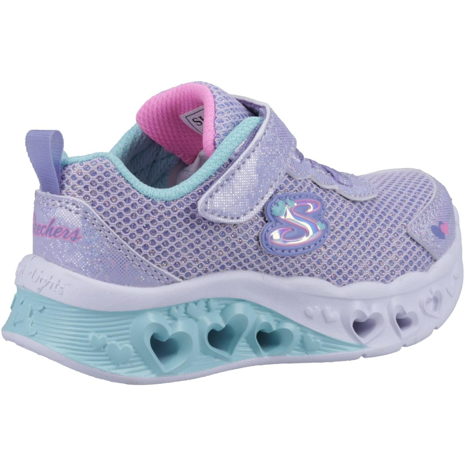 Brighten your steps with heart-filled style wearing Skechers Flutter Heart Lights Bring Sparkle. This lightweight slip-on features a lavender sparkle mesh upper and a fun 3-D heart-sculpted light-up midsole.