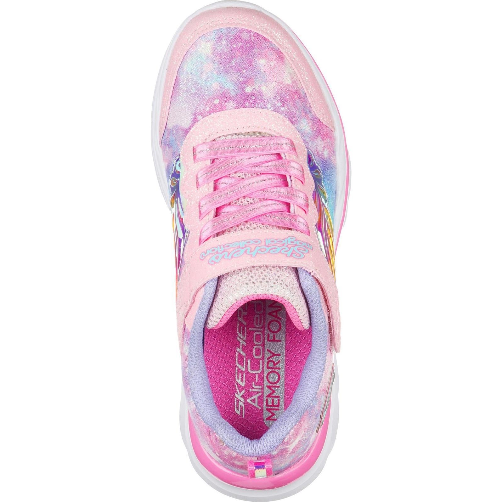 Magical wings will make her stylish in Skechers Quick Kicks - Flying Beauty. A slip-on featuring a soft multicolored fabric and glitter finish synthetic upper with a side wing detailing, stretch-laced front and Skechers Air-Cooled Memory Foam insole.